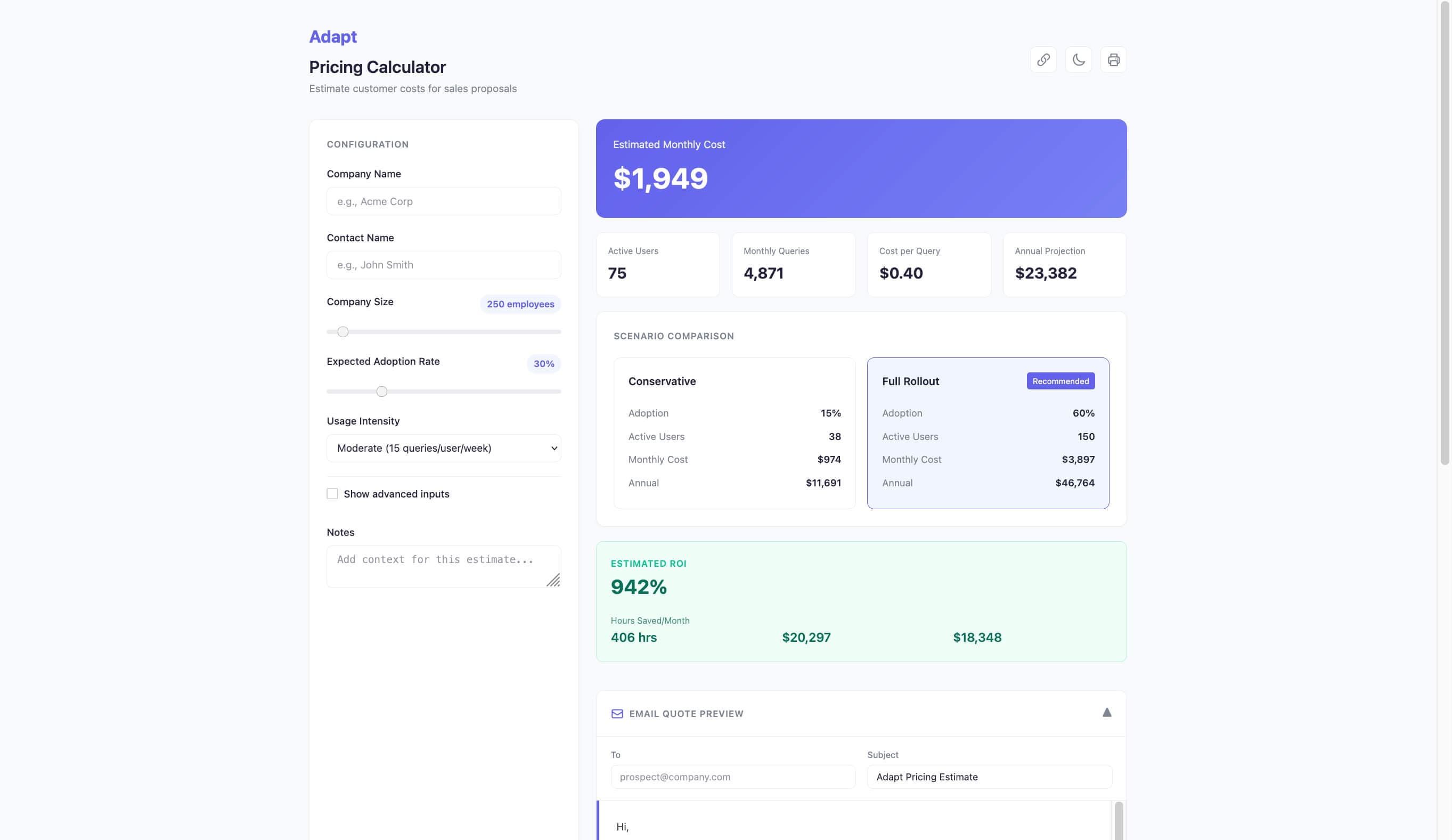 Full-stack apps deployed from a conversation. Pricing calculators, onboarding checklists, commission dashboards.