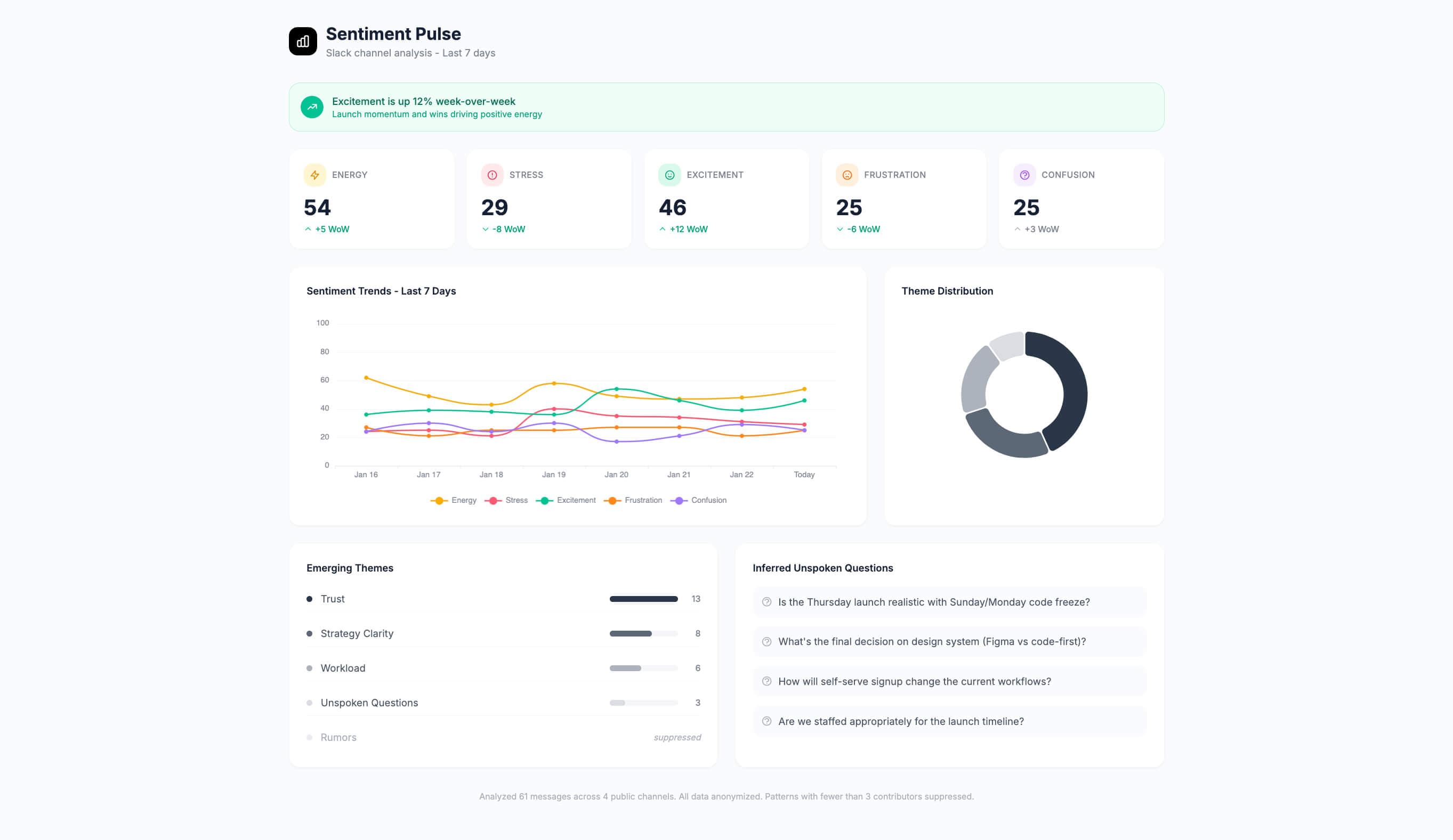 The boundary is: there is no boundary. Adapt works natively in Slack. Generate a report and share it without opening another tab.